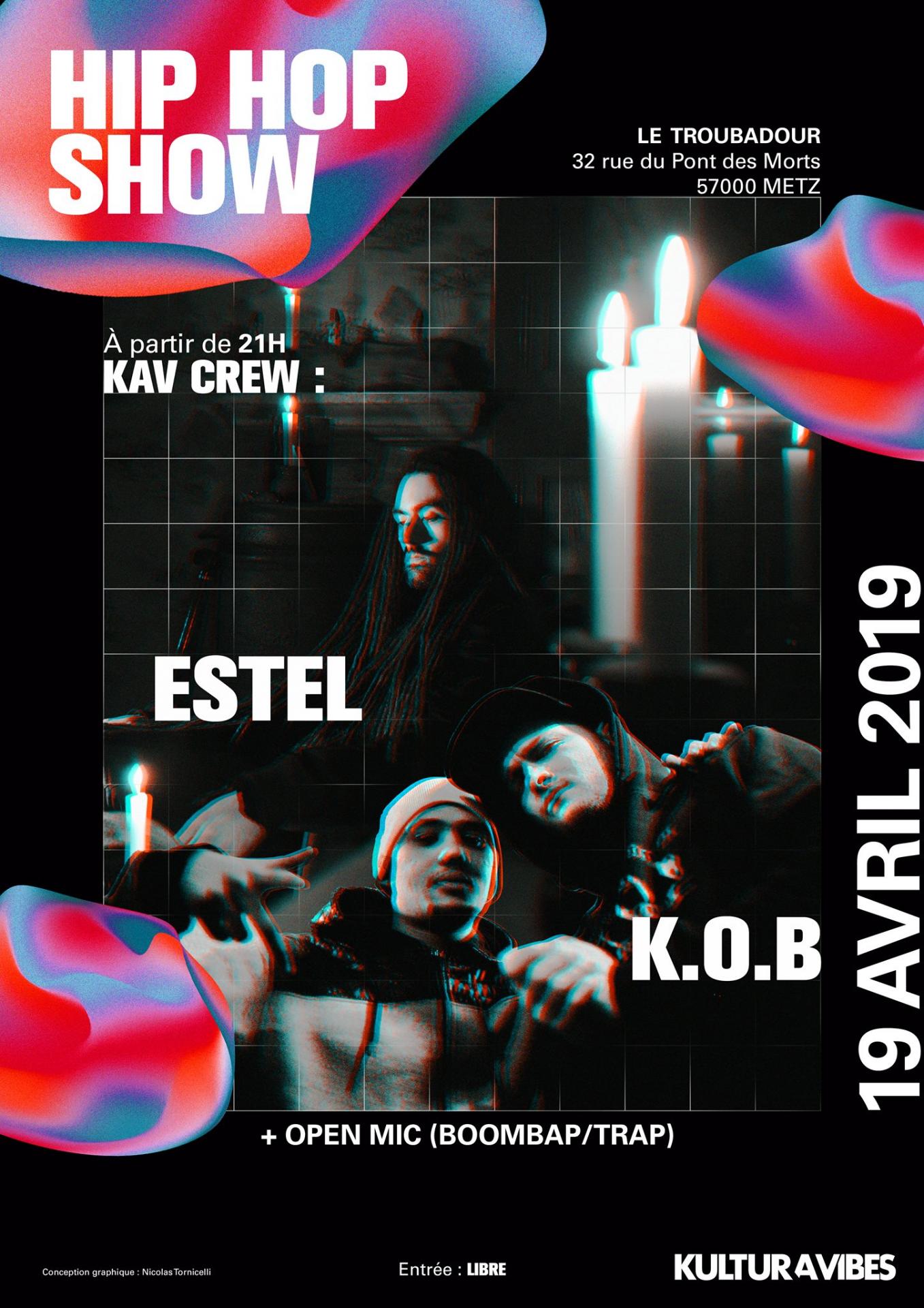 Retrouvez ESTEL et K.O.B pour une soirée de flows Hip Hop.